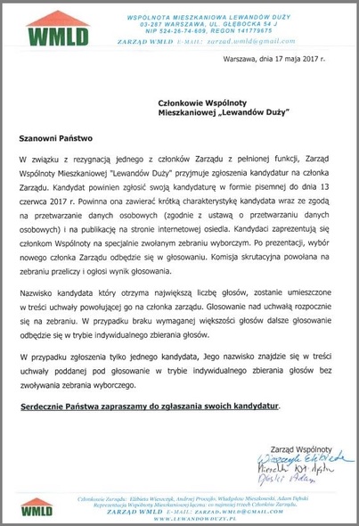 Zarząd Wspólnoty Mieszkaniowej ,,Lewandów Duży"