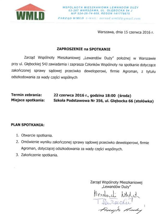 Zarząd WMLD, 2015-01-21